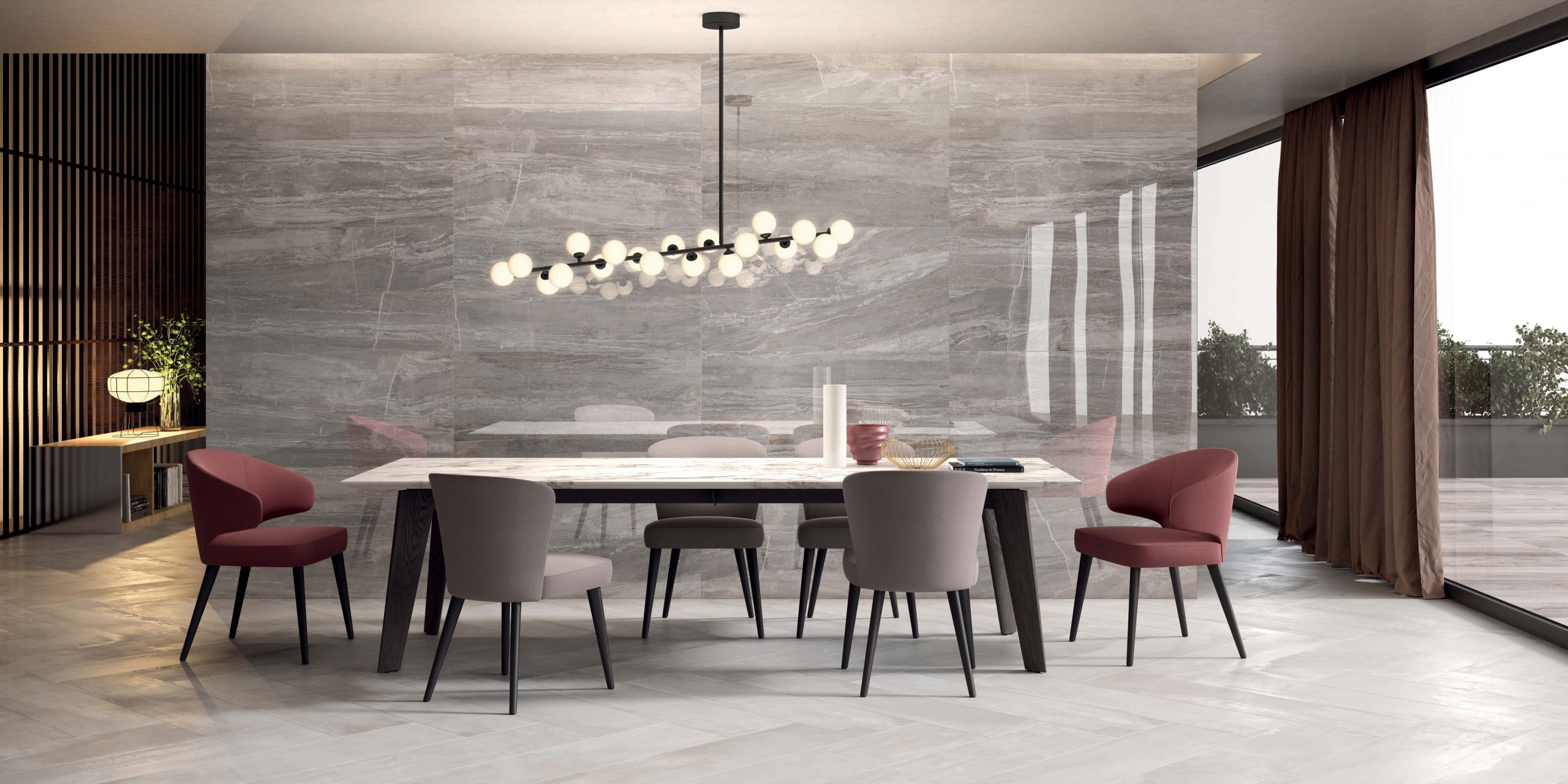 Kolekcija ploščic Sensi znamke ABK Ceramiche odlično reproducirajo hipnotične žile marmornega kamna, po katerem so se zgledovale. Kolekcija predstavlja 5 barv: tri svetle barvne različice (Statuario White, Calacatta Select in Sahara Cream) in dva intenzivnejša tona (Arabesque Silver in Pietra Grey) ter dva zaključka: LUX+ (ekskluzivna tehnologija, ki omogoča reprodukcijo dragocenega sijaja poliranega marmorja na velikih ploščah) in naravni Sablè (ročno brušenje). Te ploščice iz porcelanske keramike, ki jih je enostavno namestiti, so namenjene talnim in stenskim oblogam bolj sofisticiranih notranjih prostorov, stanovanjskih ali poslovnih.
