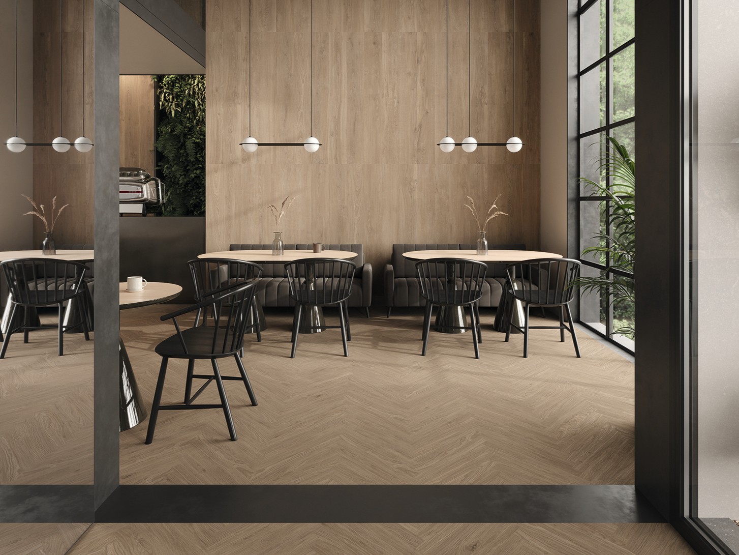 Sodoben videz, v svojem polnem lesenem bistvu in moderni estetiki. Kolekcija se ponaša s petimi barvami, vse so naravne, kot naravni referenčni izdelek, v kromatični lestvici, od kremne do lešnikove, ki prehaja skozi odtenke bež.