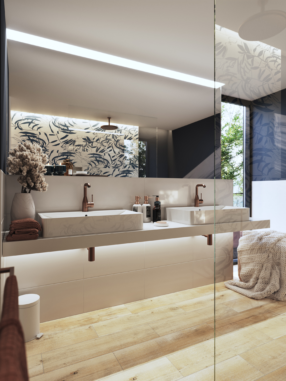 Ohranite čisto kopalnico brez nereda, saj tako vzdržujete občutek miru. Vaše pravilo oblikovanja naj bo minimalizem – z uporabo rešitev za shranjevanje, kot so lebdeče police, košare ali skrite omare, da bodo toaletne in vsakodnevne potrebščine lepo organizirane in izven pogleda.