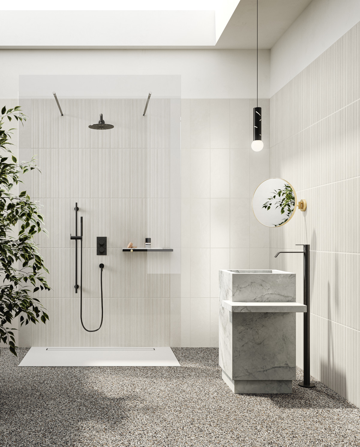 Ena najenostavnejših rešitev za moderen videz kopalnice je uporaba ploščic z enakim vzorcem na tleh in stenah. Ta pristop povezuje prostor, ga optično povečuje in ustvarja eleganten, usklajen dizajn. Svetli odtenki, kot so bela, bež ali siva, prostor naredijo svetel in zračen, medtem ko različne teksture dodajo dinamiko in razbijejo monotonost.