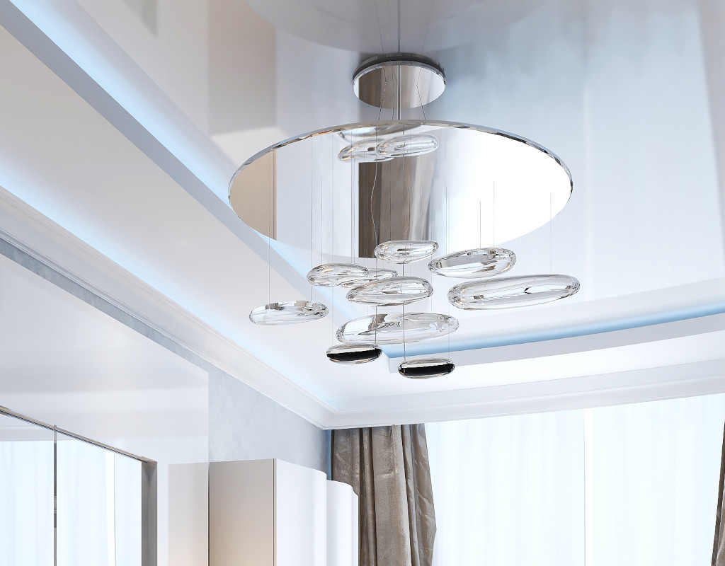 Osvetlitev je osrednji del vsakega stropa. V kopalnici lahko vgradne LED luči poskrbijo za enakomerno osvetlitev, medtem ko LED trakovi vzdolž robov dodajo subtilen svetlobni poudarek. To je odličen dodatek za manjše kopalnice, saj osvetljen strop optično poveča prostor.