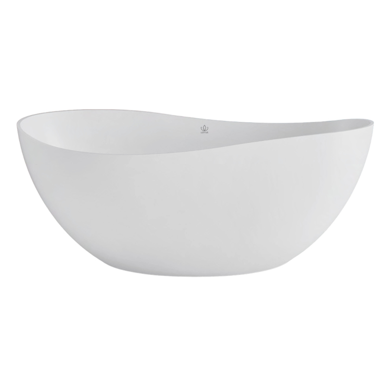Ovalna prostostoječa kopalna kad Lotus iz umetnega kamna (liti marmor). Očara z valovitimi linijami in elegantnim asimetričnim dizajnom. Poleg vrhunske estetike in prijetnega občutka na otip kad nudi široko in ukrivljeno hrbtno oporo ter pravšnjo dolžino dna, zato bo vaša kopel še bolj udobna in sproščujoča.