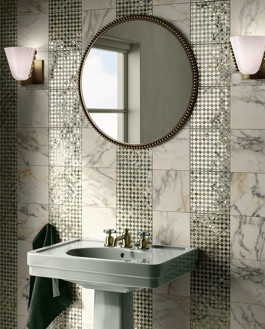 Tudi drobni detajli postajajo pomemben del oblikovanja. Keramični poudarki s sijočimi, kovinskimi ali zlatimi detajli popestrijo minimalistične ambiente in jim dodajo prefinjen značaj. V ospredju so reliefne teksture, teraco vzorci in sodobne interpretacije mozaikov, ki s svojo barvno živahnostjo ustvarjajo igriv, a eleganten vtis.
