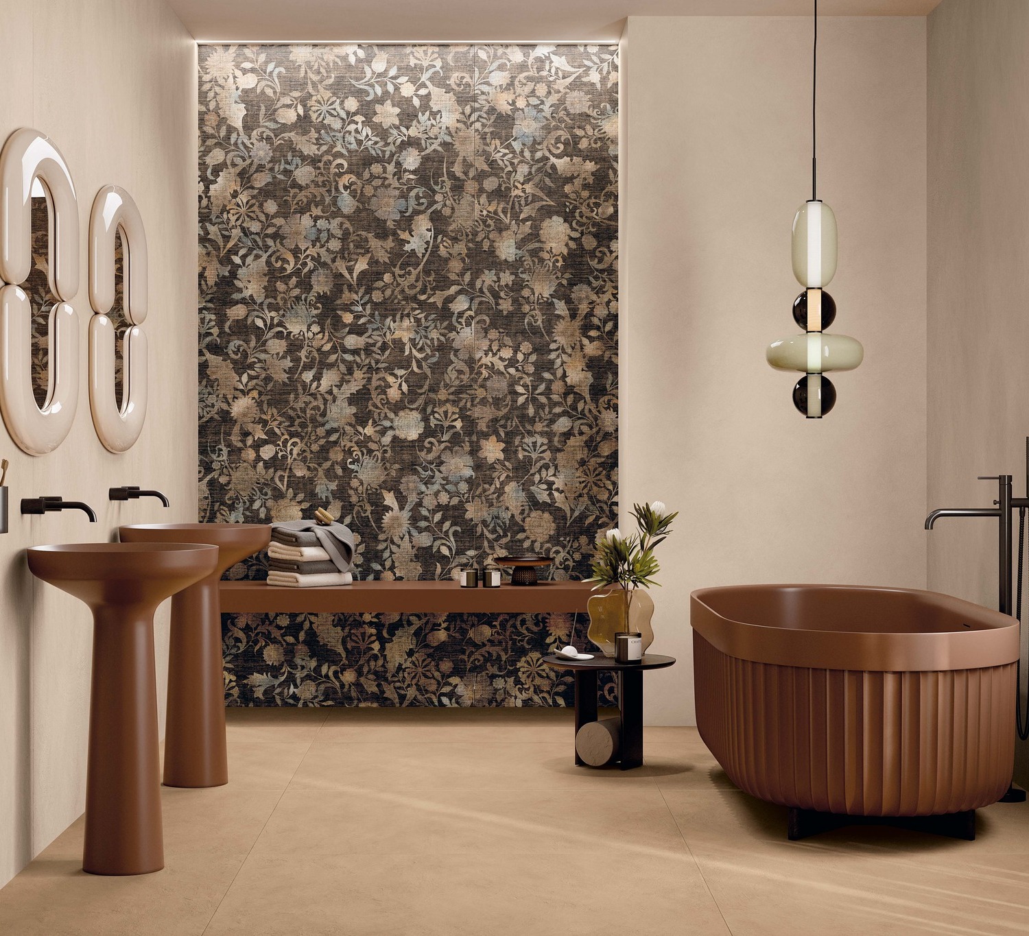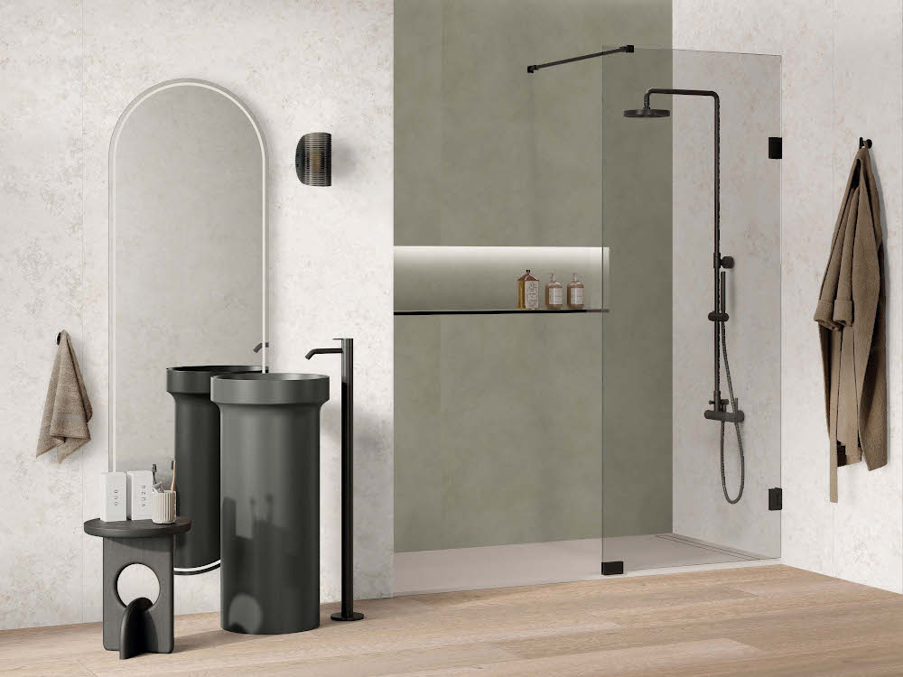 Keramika, kamen, les in kovinski detajli ne delujejo več ločeno, temveč v medsebojnem odnosu, ki prostoru daje globino in jasen značaj. Glede na prostorske omejitve in individualne preference je kombinacije mogoče izbrati na tri različne načine, od preprostosti enotnih barv do bolj kompleksnih in vizualno presenetljivih dizajnov.